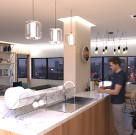 SCR Architects reimagined the layout and strategy, creating two distinctive, modern residences. One was designed for private sale, while the other serves as a shared amenity for the condominium association, enhancing functionality and livability.